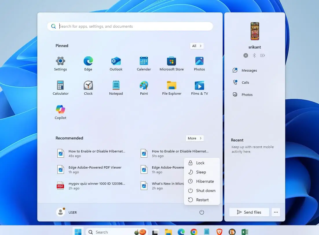 Now you’ll see the Hibernate option in the Start Menu’s Power section.